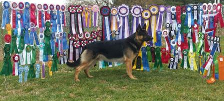 | EZ Brooks Yureka von Ryanhaus UKC Grand Champion, BIS, BCAT, CGC,CGCA, SPOT, TKN, TC, Achiever dog. OFA cardiac, patella, dentition normal |